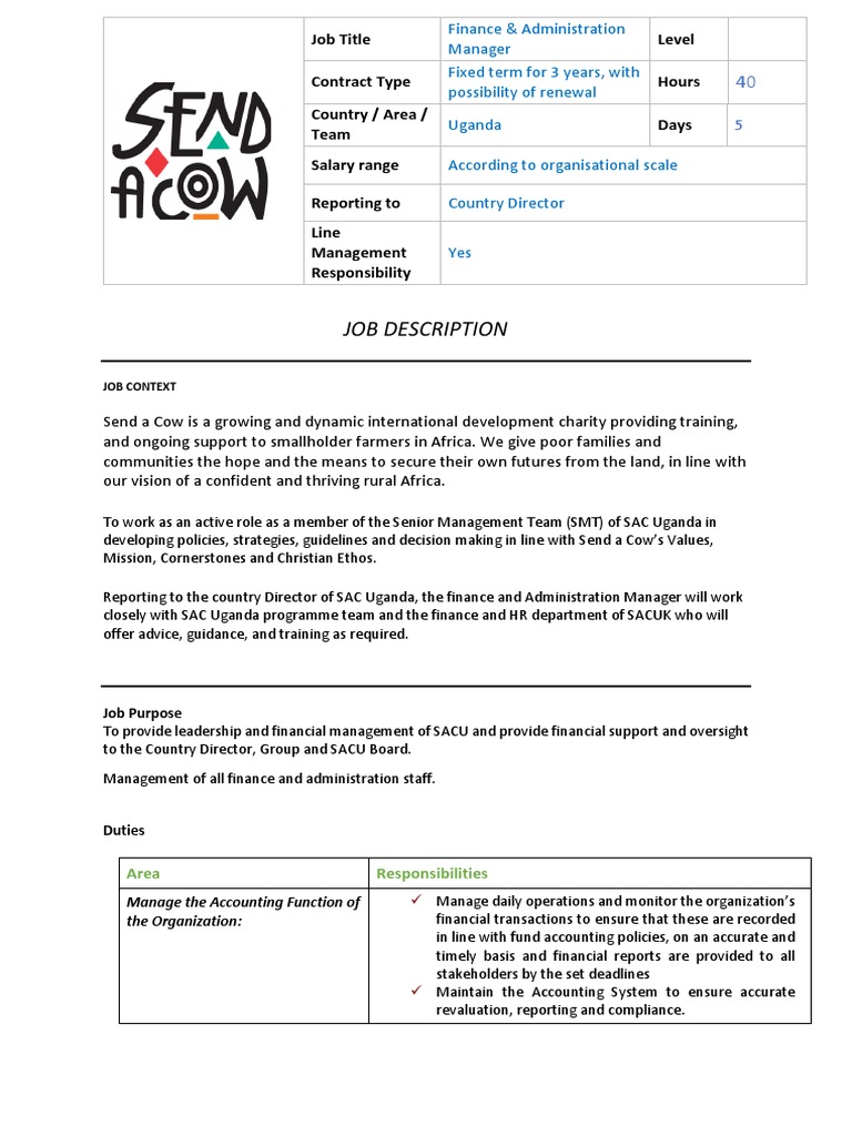Https Www Redcross Vg Wp Content Uploads Sites 5 2019 01 Finance Admin Manager Bvi Jd V4 June 2018 Pdf from An effective finance manager job description shows candidates how they'll make an impact. Develop the overall corporate financial goals and objectives. What is a finance manager? Oversee preparation of financial records related to general ledger, payroll, budget, expense, etc. Skills, responsibilities, and qualifications are essential to attracting and identifying the right fit for the job. Sdi/pmu commensurate with the general thrust of this job description. To work closely with the stakeholder management team to provide financial and operational monitoring and controls on all programmes of work and activities, including producing reports and overseeing analysis of data and budget administration 2 key accountabilities Post on job boards for free.